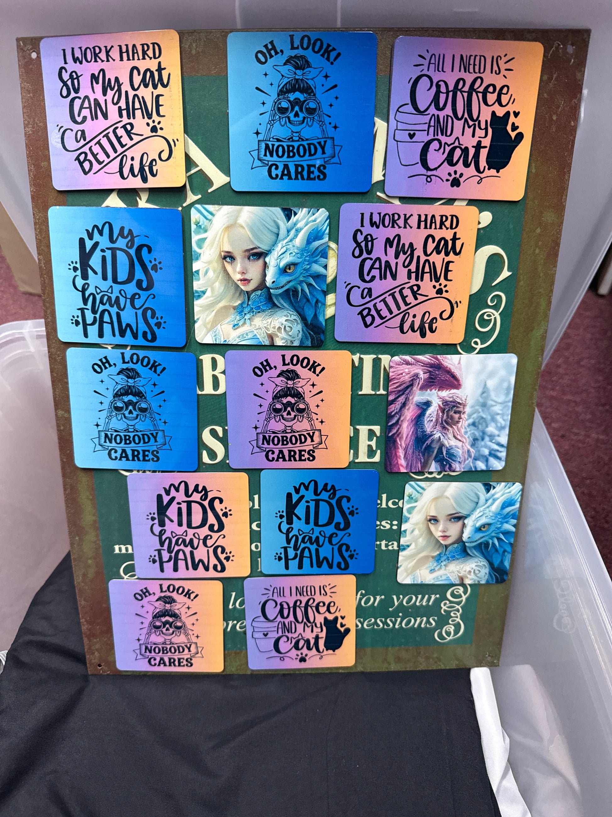 Turn up the sarcasm on your fridge with these fun magnets. Featuring hilarious quotes and stylish gradient backgrounds, these designs are perfect fridge magnets that make a bold statement in any kitchen or on any metal surface.